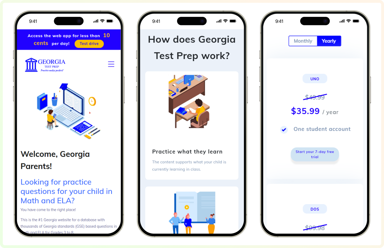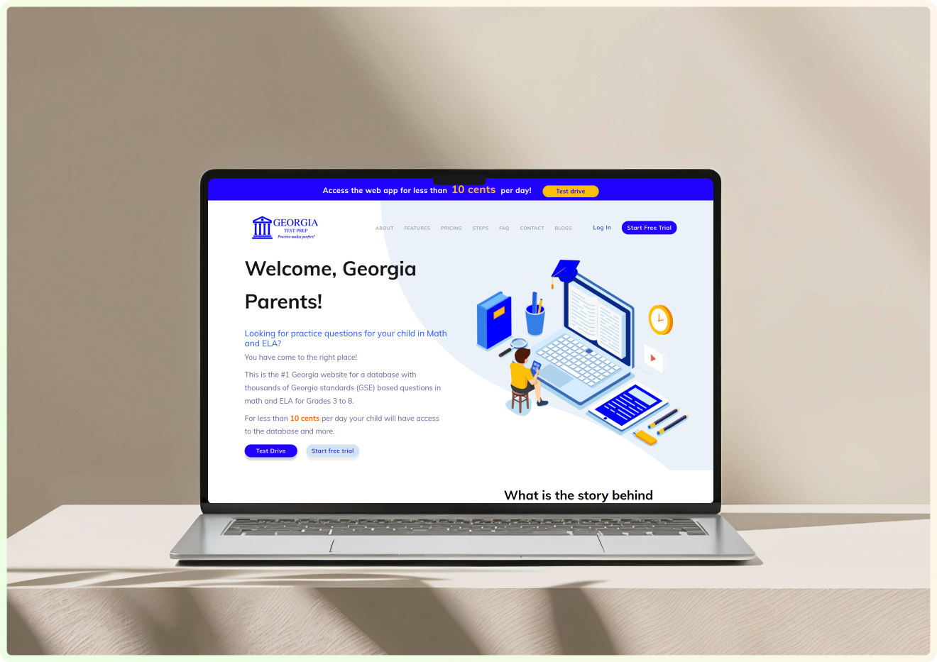 Georgia Test Prep helps students in grades 3–8 practice Georgia DOE-based Math and ELA questions, strengthen what they learn in school. To support this, the client partnered with The OrangeByte to design and develop a cloud-based platform with interactive practice module and features for parents to track progress and manage assignments.